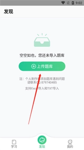 2、进入上传页面,点击上传题库按钮;