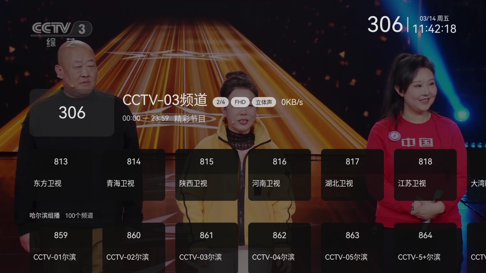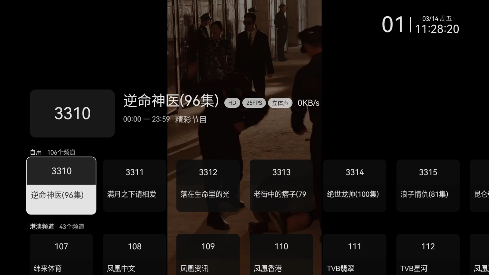 3、界面简洁明了,功能一目了然,换台只需一键操作,老人小孩都能轻松使用。