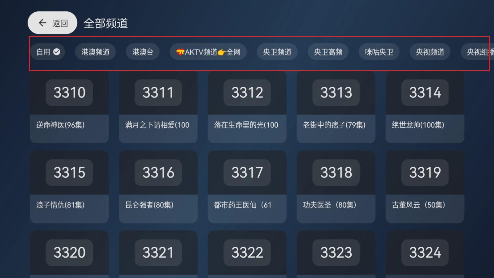 2、如图,涵盖了多个频道资源,选择所需频道进入。