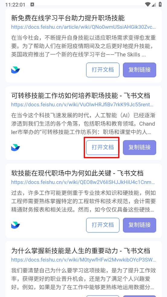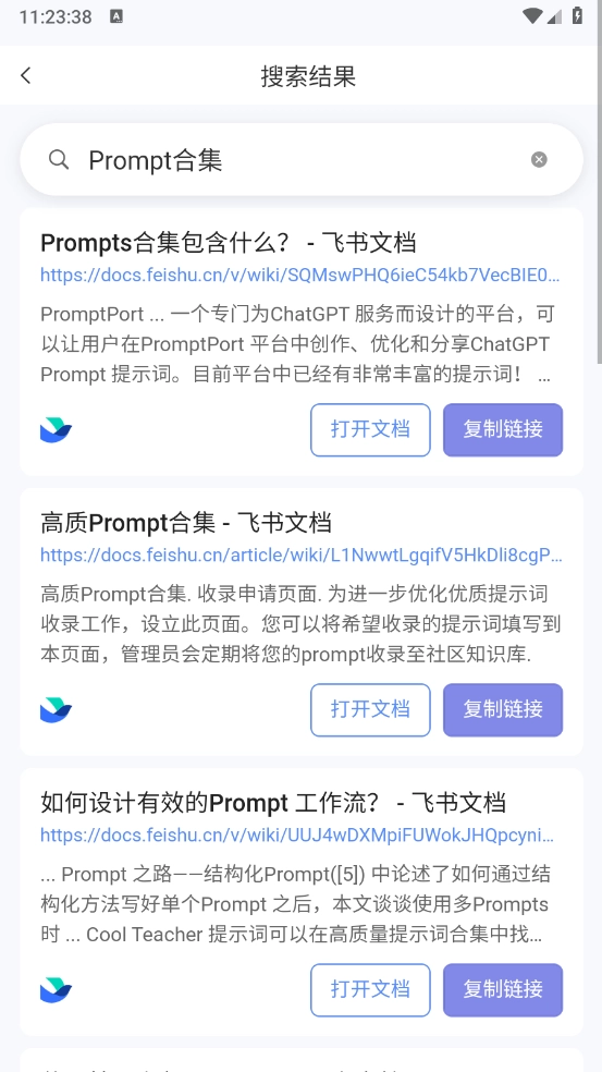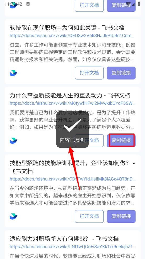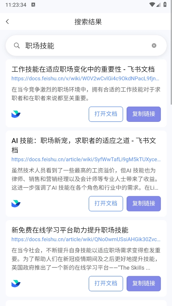 3、不用打开飞书,也能在飞搜侠里快速预览文档内容。