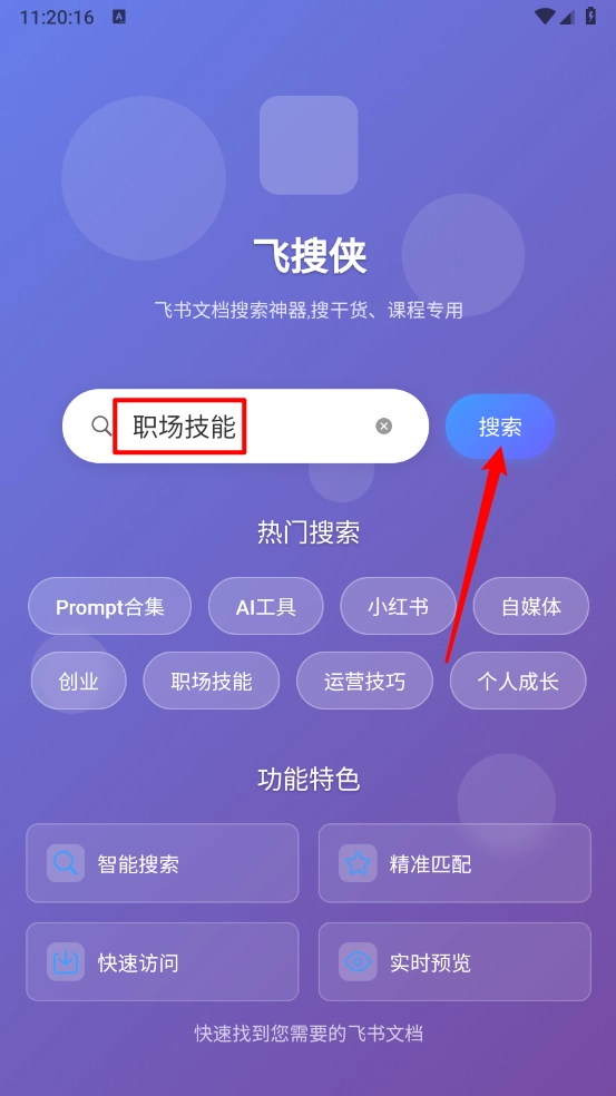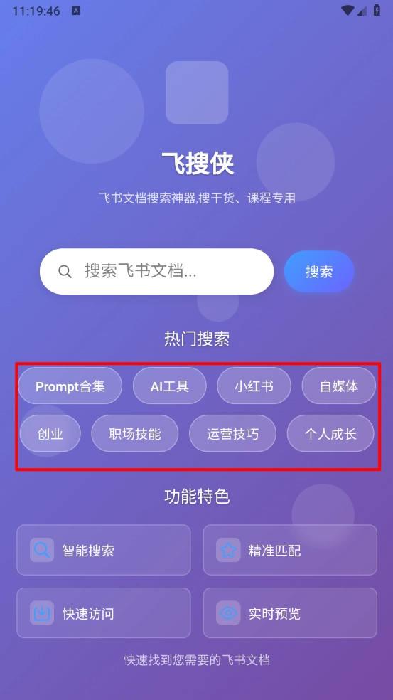 飞搜侠是一款专门用于飞书文档的搜索工具,是查找干货和课程内容的必备软件。只需输入关键词,就能迅速定位到所需的飞书文档,并且可以直接预览内容,让办公效率大幅提升。无论是会议纪要、项目报告还是合同资料,都能快速调取。