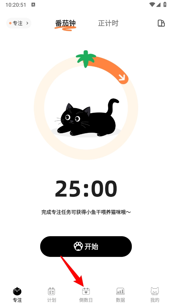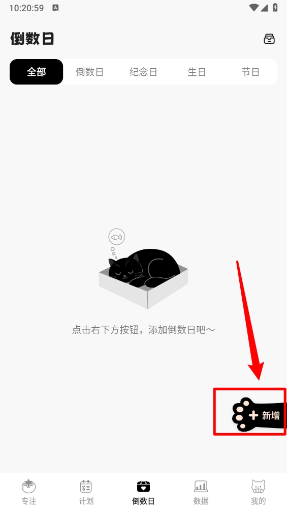 1、打开喵喵自律器,在主页点击"倒数日"。