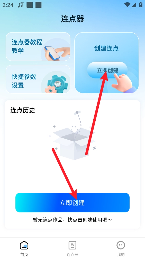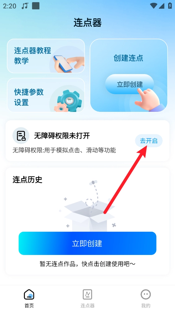 7、最后在主页创建连点,弹出菜单栏目,设置好对应的点击位置后,就能开启执行点击操作。