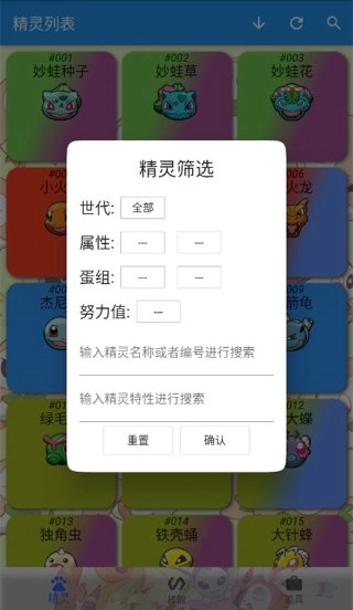 2、根据自己需要寻找的宝可梦信息进行筛选。
