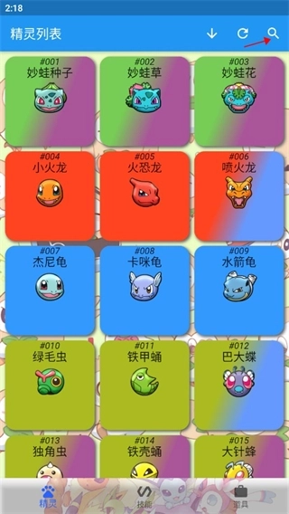 1、打开软件首页后,在首页里随意挑选一只宝可梦进入其详情页面(这里以小火龙作为例子);