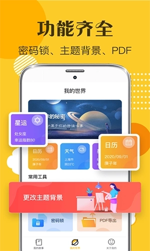 【日记分类】对日记进行精准分类管理,把生活、工作、爱情这几方面的内容分开记录。