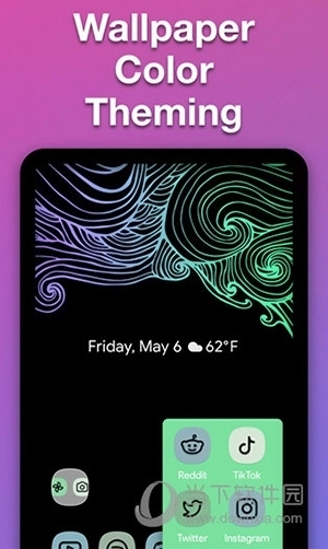 1、快捷主题:您会为壁纸中的颜色自动适配主页面内各类项目的效果而感到惊喜!