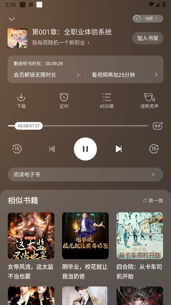 进入书籍阅读页面后,轻点屏幕中间就能调出菜单,点击目录图标后上下滑动屏幕,就能查看这本书的所有章节目录。