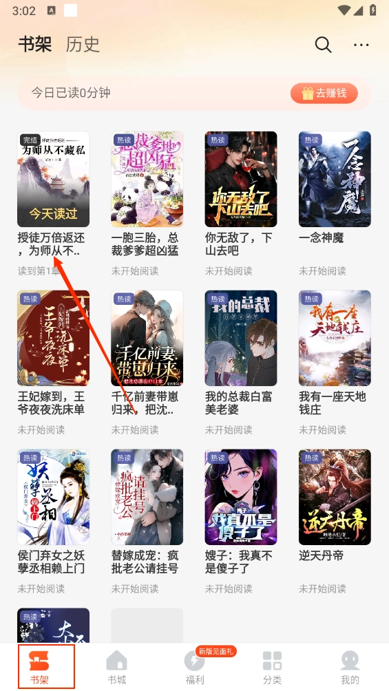 3、最后进入书架板块,即可查看加入的小说资源了。