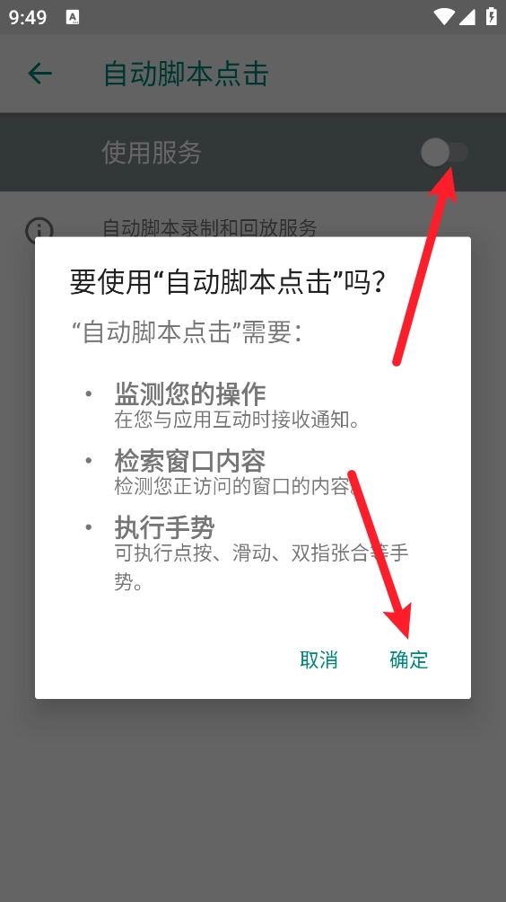 4、然后打开使用服务开关,点击"确定"即可。