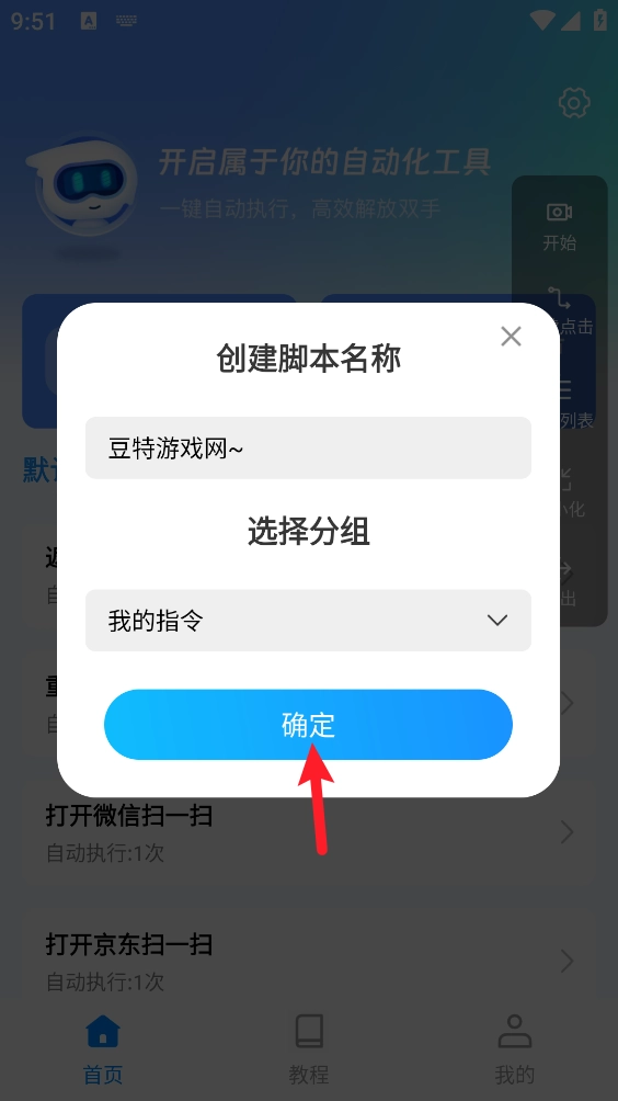 1、先在成功后,打开自动脚本点击。