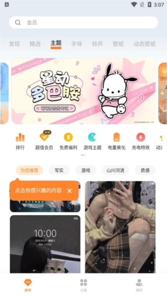 视频主题与视频壁纸,突破静态局限,让你的手机桌面瞬间变身成又甜又萌还超潮酷的模样。