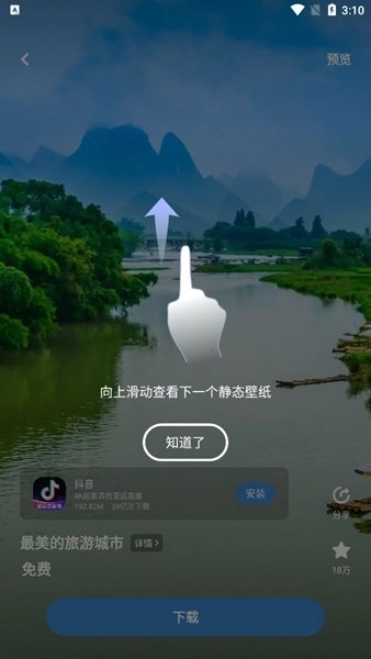 3、在壁纸详情页面里,点击下方的【】按钮能够切换到下一个壁纸,另外通过滑动操作也可以查看下一个壁纸。