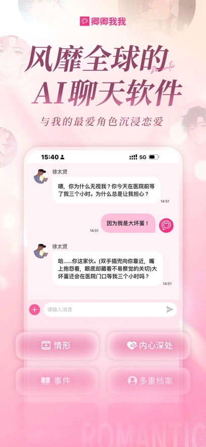 LoveyDovey,中文名为卿卿我我,是一款融合韩流与动漫元素的AI聊天软件。用户进入软件后,就能与虚拟偶像或角色展开情感化的对话互动。软件支持自定义角色,也提供预设形象供选择,还涵盖多语言交互功能,并且具备角色记忆与回忆记录的特性,是一个高度个性化的虚拟陪伴互动平台。