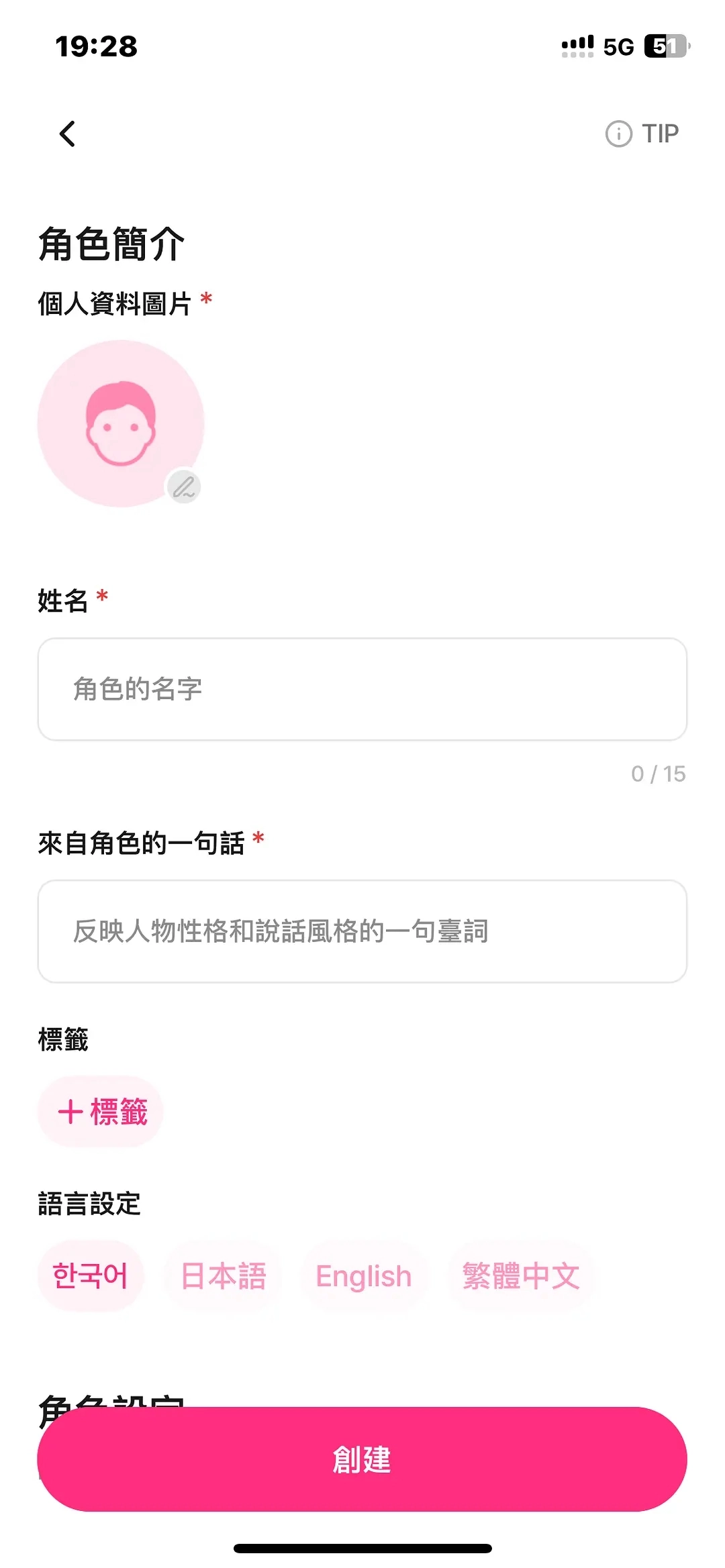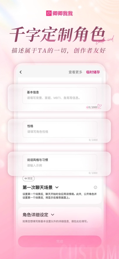 2、打开软件后即可创建专属的聊天角色,还能对角色的语音、介绍、性格等进行自定义设置。