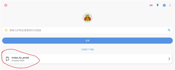 5、打开甲壳虫adb助手,此时搜索框下方会出现设备(可能需要十几秒刷新时间),选中设备后点击连接按钮