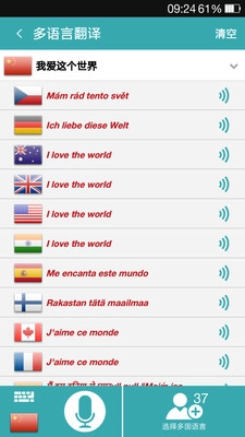 4、随后输入需要翻译的文本,就能看到多国语言的文字翻译以及听到对应的语音翻译啦。