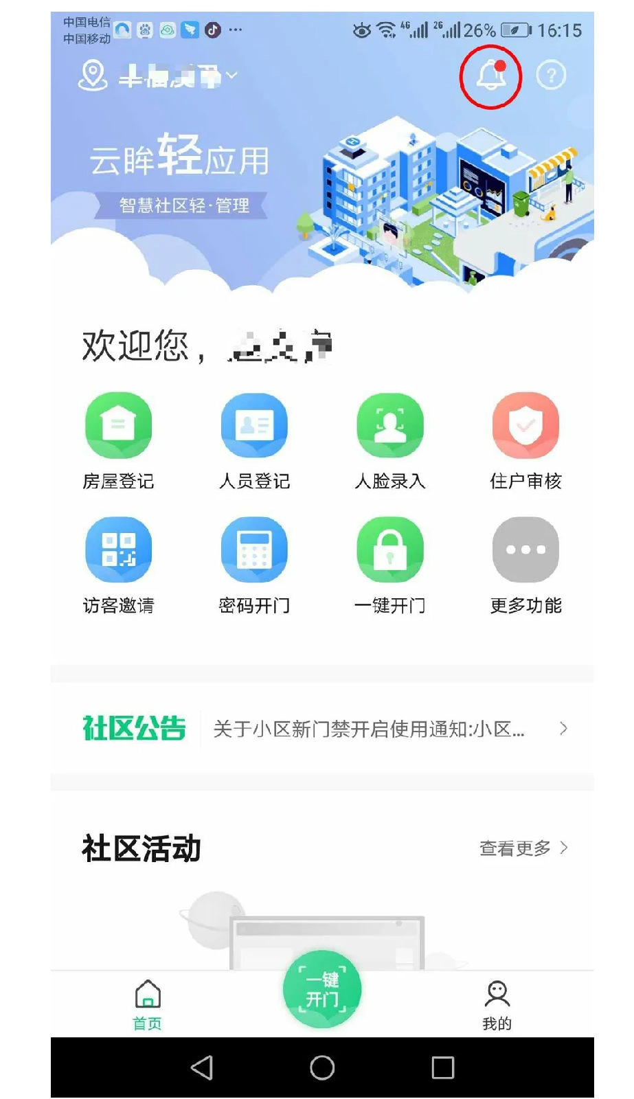1、使用云眸社区业主版的第一步是注册账号并完成实名认证,之后点击“我的房屋”选项;