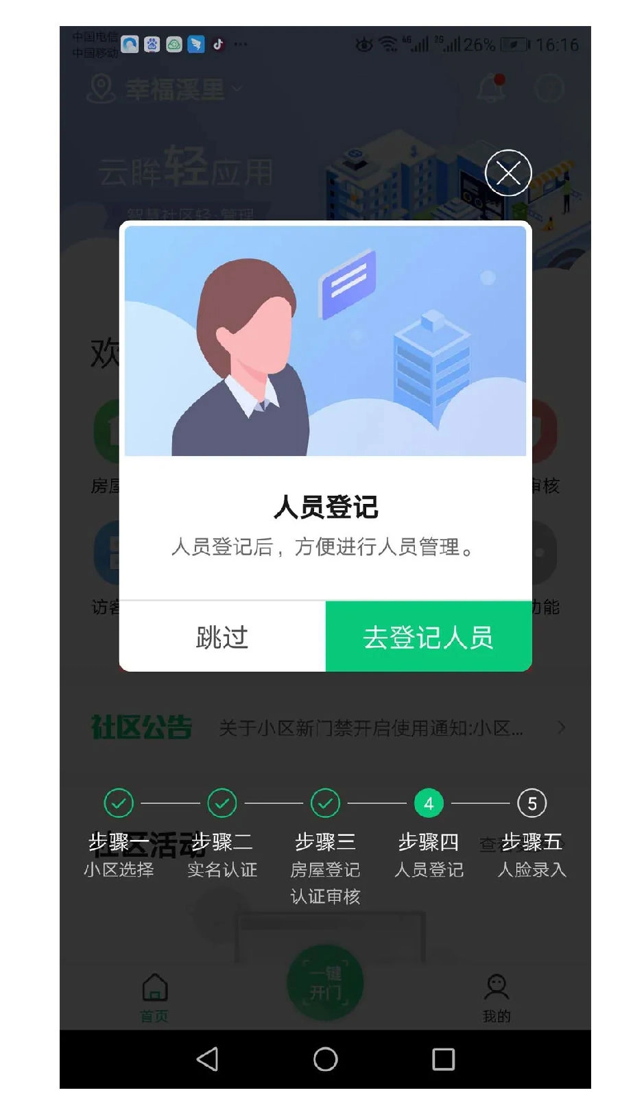 1、优化入住环节,新住户可借助平台便捷完成信息登记。