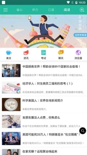 1、双语美文赏析、双语新闻实时速递、各类考试资讯以及英文小说阅读等内容。