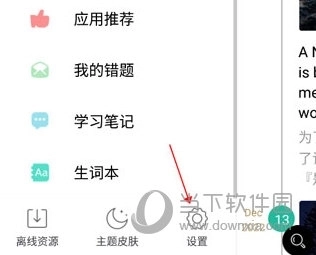 1、点击省心英语界面的左上角,在弹出的页面右下方找到“设置”选项。
