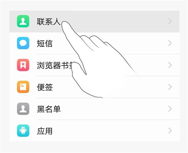 5、【短信】【应用】等的备份方法与【联系人】的备份方法相同。