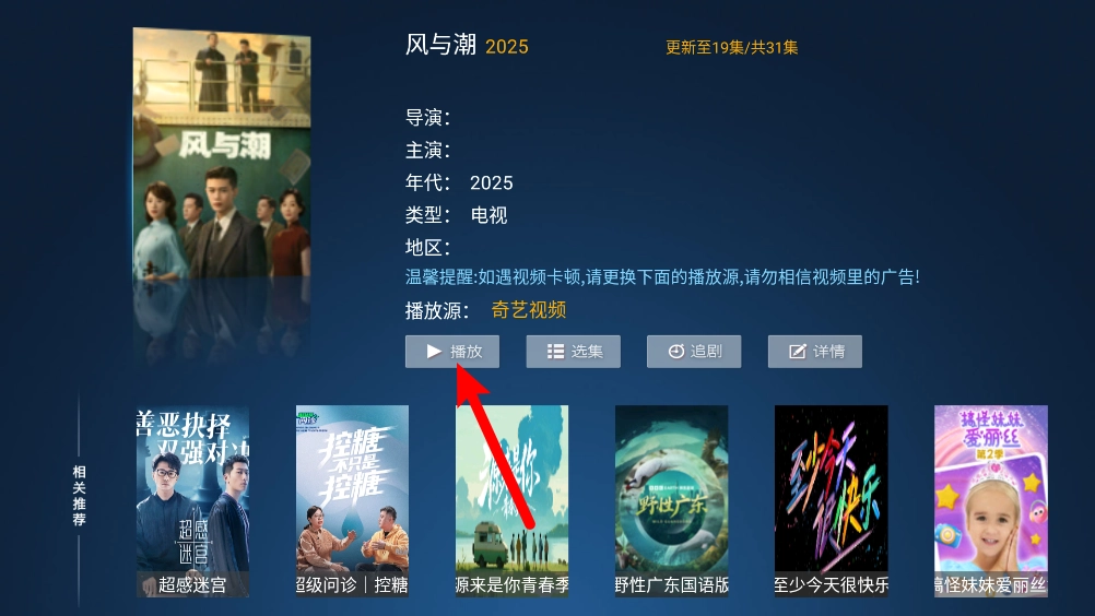 3、一键打开进入播放详情页,点击"播放"按钮。