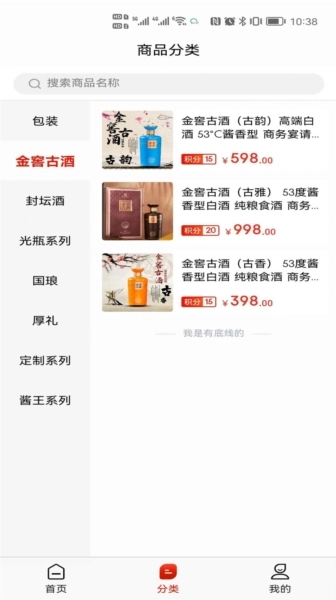 3、金窖的商品分类十分详细,您可以直接搜索商品名称来选购酒品哦;
