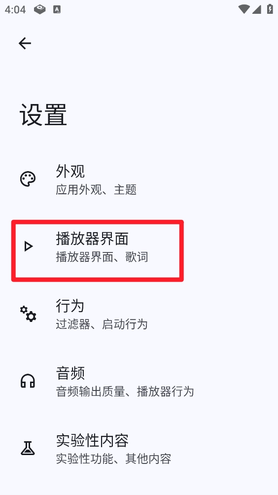 4、在设置页面打开"播放器界面",如图所示。