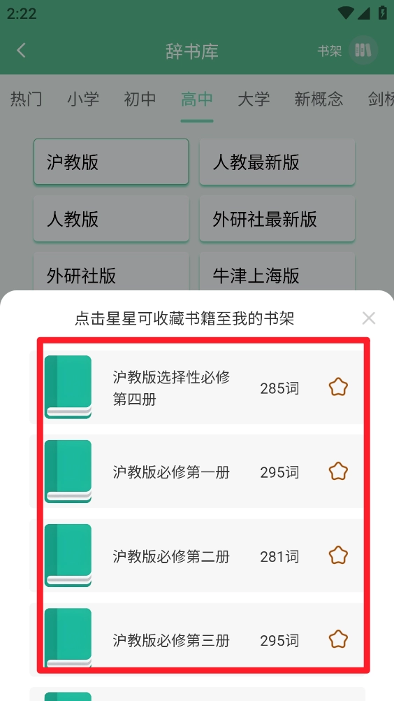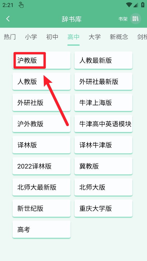 5、如图所示,以"高中"为例,点击"沪教版"。