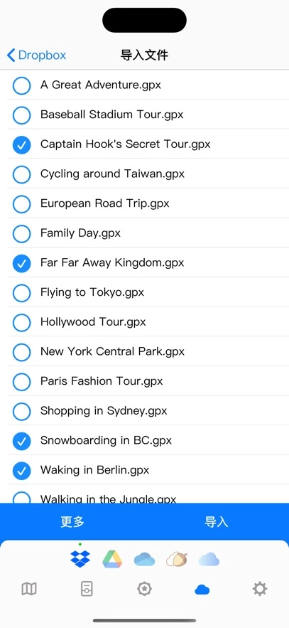 5、支持导入GPX和KML文件(可通过其他GPS装置记录轨迹后再进行导入)。