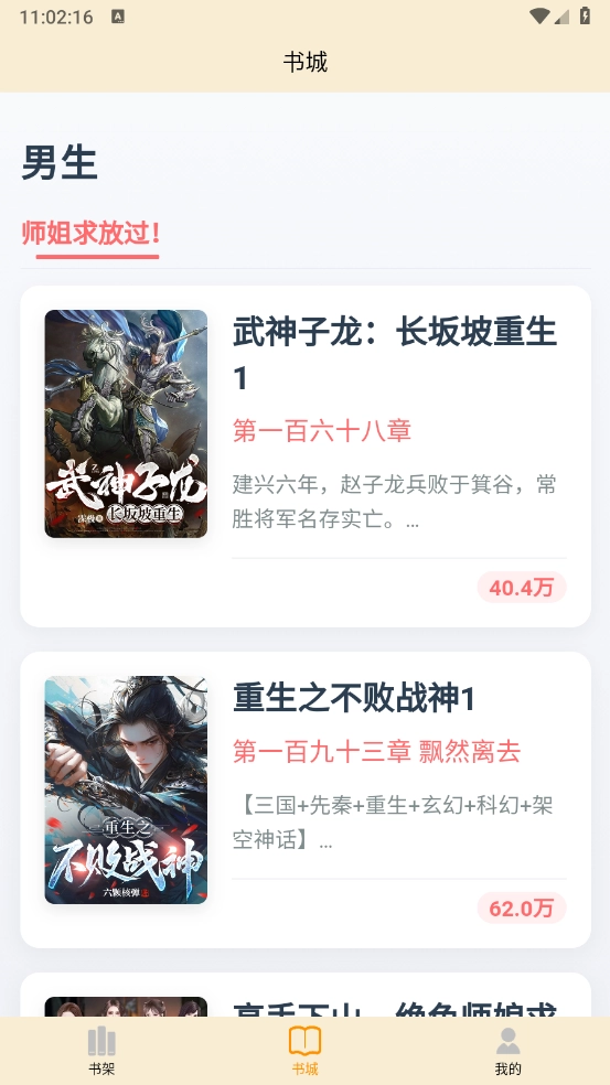 2、进入书城选择所需加入的小说资源。