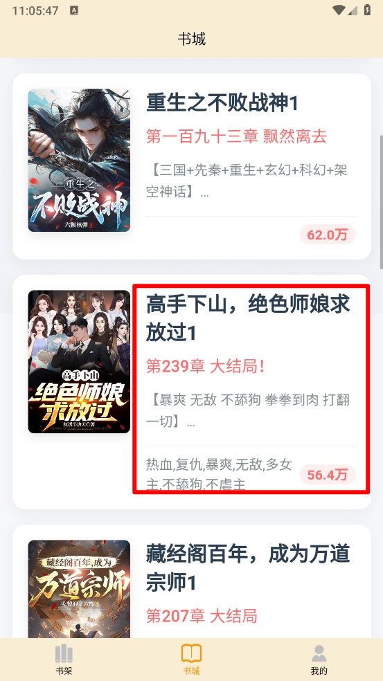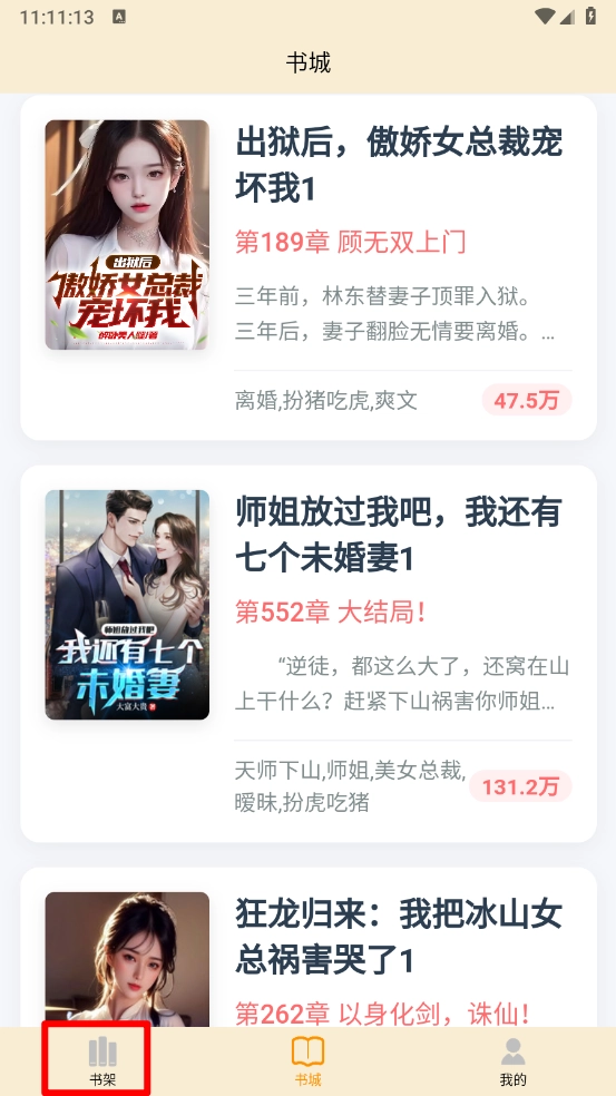 4、回到书架板块,如图所示,就能查看已加入书架的小说。