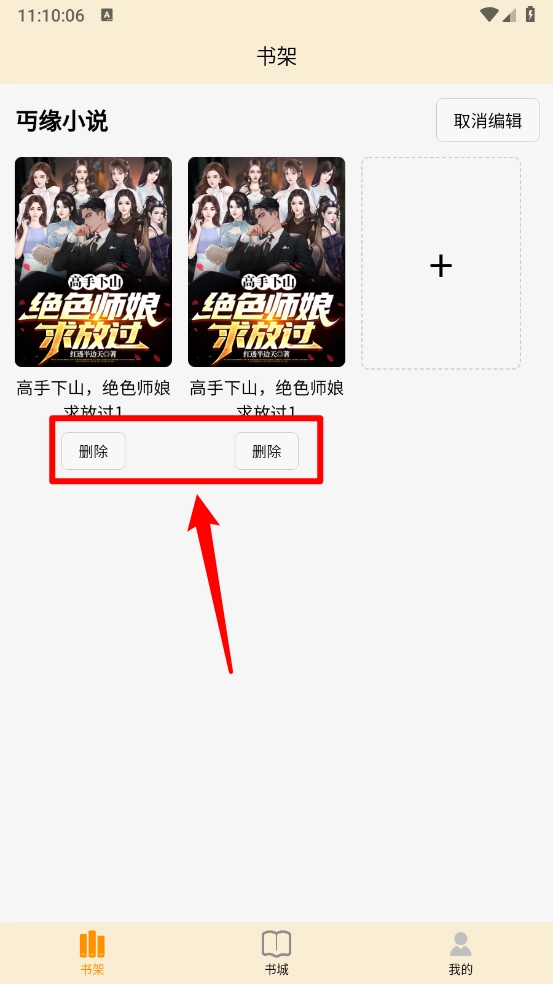 3、如图所示,点击小说底部"删除"即可。