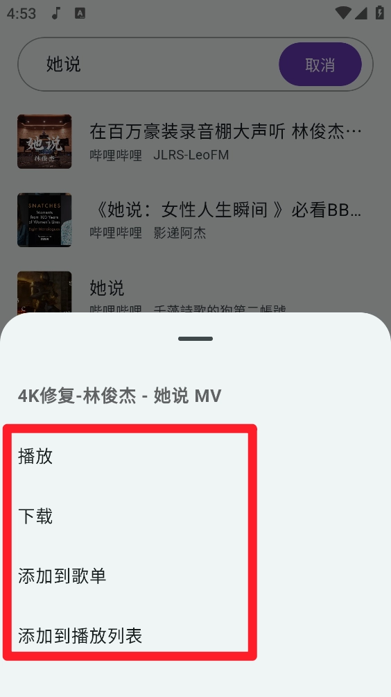2、支持通过歌手、音乐类型或用户自定义关键词开展搜索。