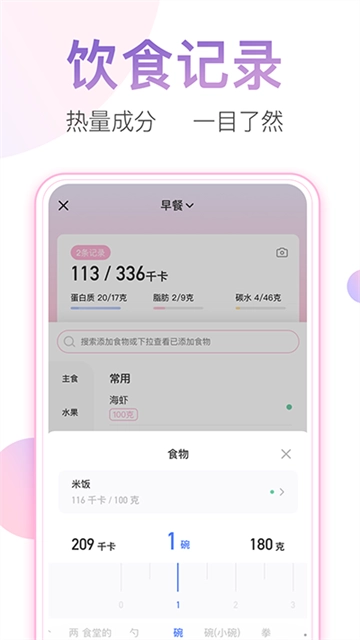 2、饮食记录方面,食物库涵盖超50万种数据,社区用户共享的自定义食物数量突破60万种;此外还提供多种专业减肥食谱定制服务,能自动匹配用户当前体重,并智能检测营养搭配比例,同时也支持常见运动的记录与自定义功能。