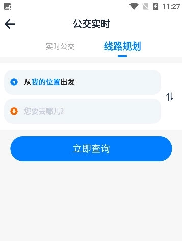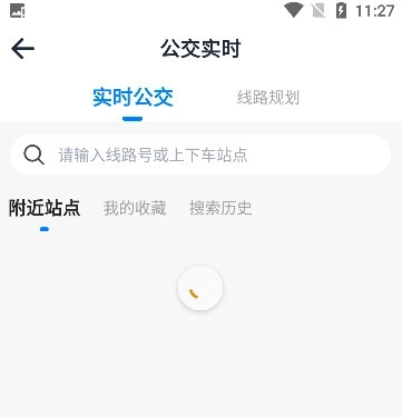 1、启动软件后,首页会默认展示周边的公交站点,点击“线路查询”即可进入查询页面,该页面提供多种查询途径。