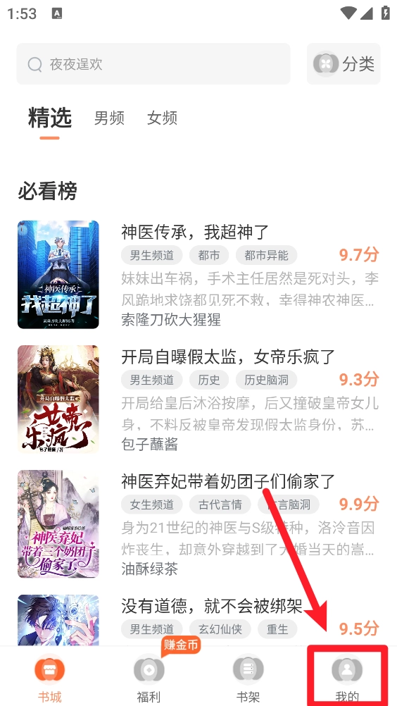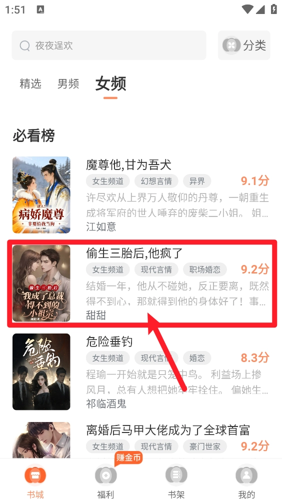 2、进入书城中选择喜欢的小说一键打开。