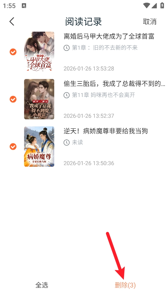 3、进入后即可查看所有阅读记录,然后点击右上角的“编辑”按钮。