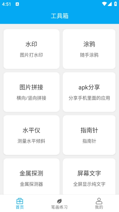 分享助手是一款功能丰富的工具箱类应用,整合了水印添加、涂鸦、图片拼接、指南针、水平仪、屏幕文字显示等多种实用工具。从图像编辑到方向探测、水平测量,这些功能可以满足用户在不同场景下的使用需求。