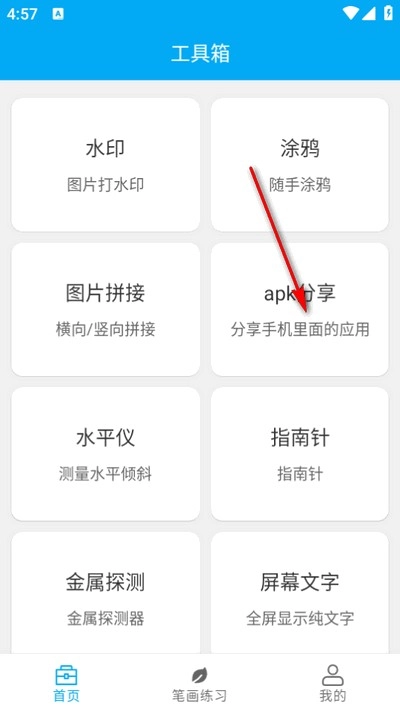 1、该软件具备多项实用功能,包括apk共享、水平仪、指南针、金属检测、弹幕文本显示、噪音测试、日期计算以及密码生成器等。