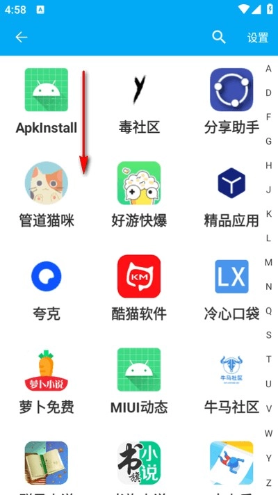 2、这里以apk分享为例,选择要分享的软件。