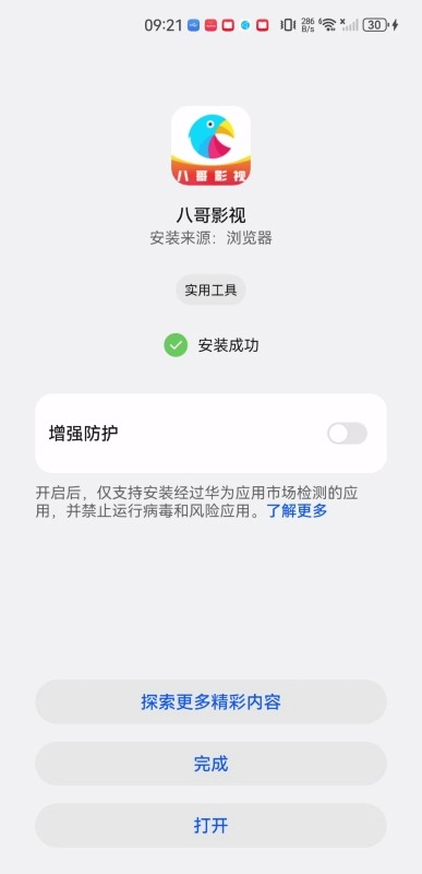 5、看到绿色对号就表示操作已成功,点击“打开”按钮,就能开始体验了。