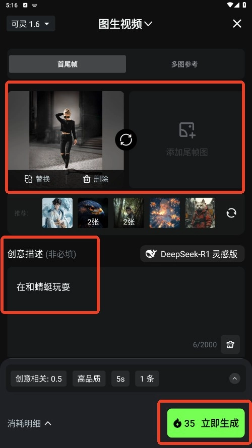 3. 上传一张图片,描述你期望图片生成视频的效果,然后点击“立即生成”按钮。