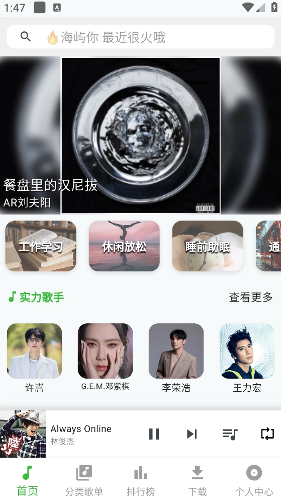 薄荷音乐是一款功能完备的音乐播放工具,它整合了在线播放与高清歌词展示两大核心功能,同时具备海量曲库资源,包含各类热门榜单、分类歌单以及歌手搜索功能,能帮助你便捷地找到并聆听心仪的音乐。此外,所有歌曲都支持下载到本地,让你即便在离线状态下也能随时享受音乐。
