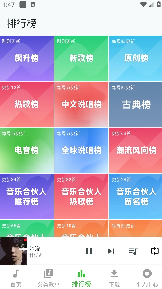 1、资源十分丰富,热门榜单与分类歌单都能实时更新,让你可以快速找到想听的音乐。
