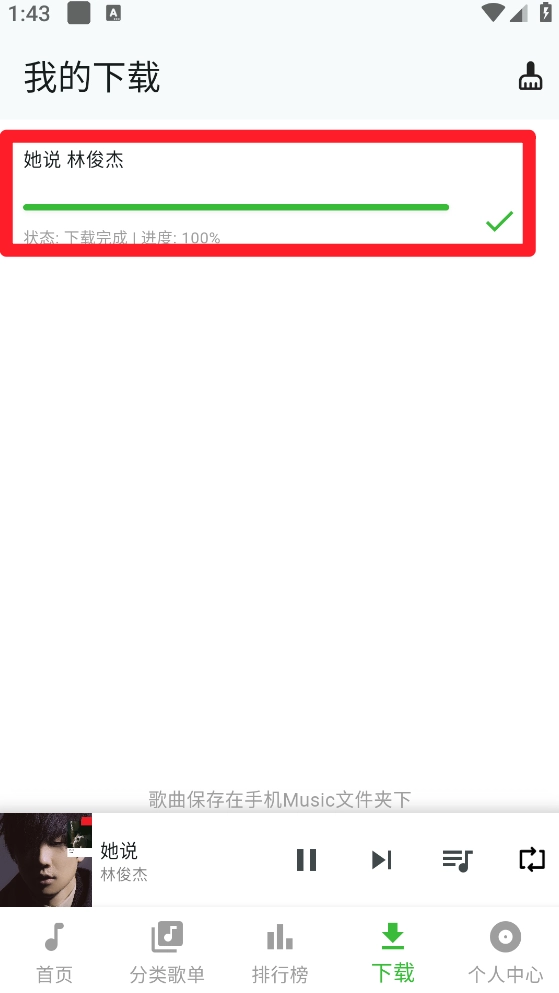 2、支持歌曲至,无需联网也能随时享受音乐。