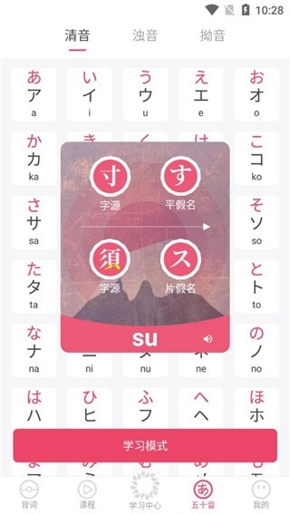 6、还具备五十音功能,如,清音、浊音、拗音等等。