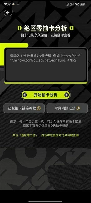 4、选择“抽卡分析”选项进入对应页面,输入抽卡分析的地址链接,点击“开始抽卡分析”按钮,就能查询到绝区零的抽卡分析结果了。