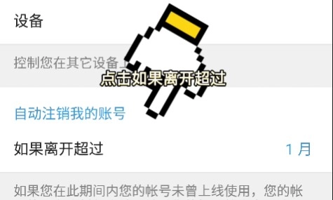 4、点击“如果离开超过”选项,若在此期间未登录账号,当到达设定的时间后,账号将自动注销并删除。